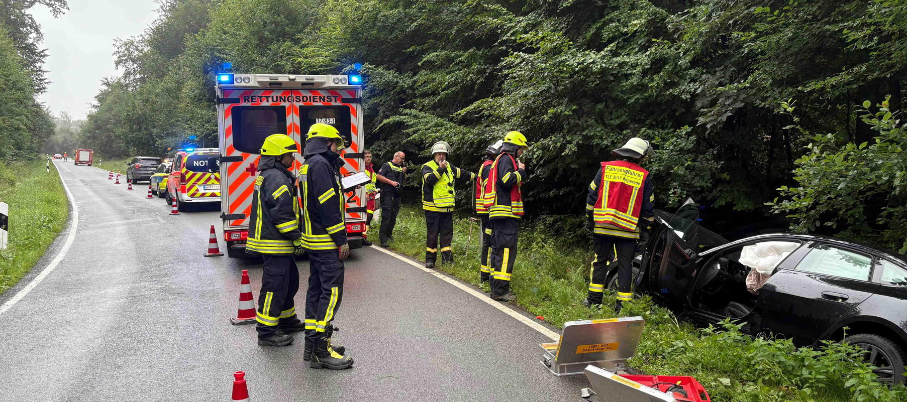 Das automatische Notrufsystem des Fahrzeugs löste unmittelbar einen Notruf aus. Die Leitstelle alarmierte daraufhin die Freiwilligen Feuerwehren Bisperode und Harderode. Ebenfalls vor Ort waren Polizei, Rettungswagen und Notarzt.